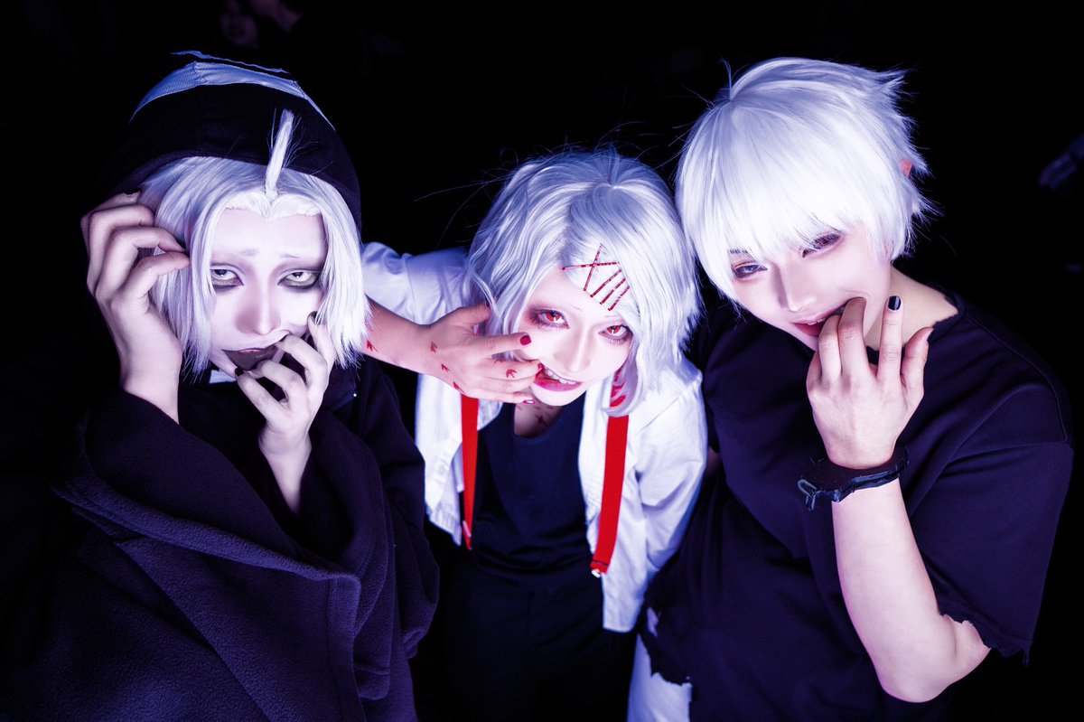 # 5a! # cosplay 東京喰種白組ッッッ!!!(仮) 🥪@_ZIGGETY_zag ☕️@yomogi_bum 🍍@MACKY_cos_1003 📸@Etuden_kinusaya