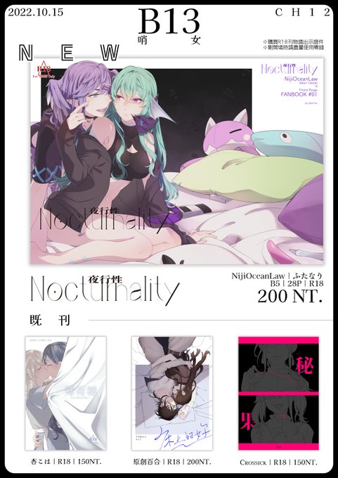 58 289 《 Nocturnality 夜行性》 ✦電子書販售 ✦販售管道:cxc.today/zh/store/197/b… 22/10/06 21:13