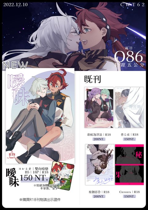 【CWT62】品書 兩天都在O86 攤位上的海報會在D2 下午1:30後釋出,500元(僅一張)