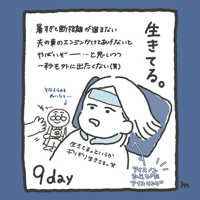 0 22 生存確認用日記📖9日目 だめだ!!!!暑い!!!!! 暑くて何も手につかない😭 アイスノン、冷えピタ、アイスリングの三種の神器でクールダウンしてます。笑 #絵日記 #イラスト #猛暑 22/08/02 23:01