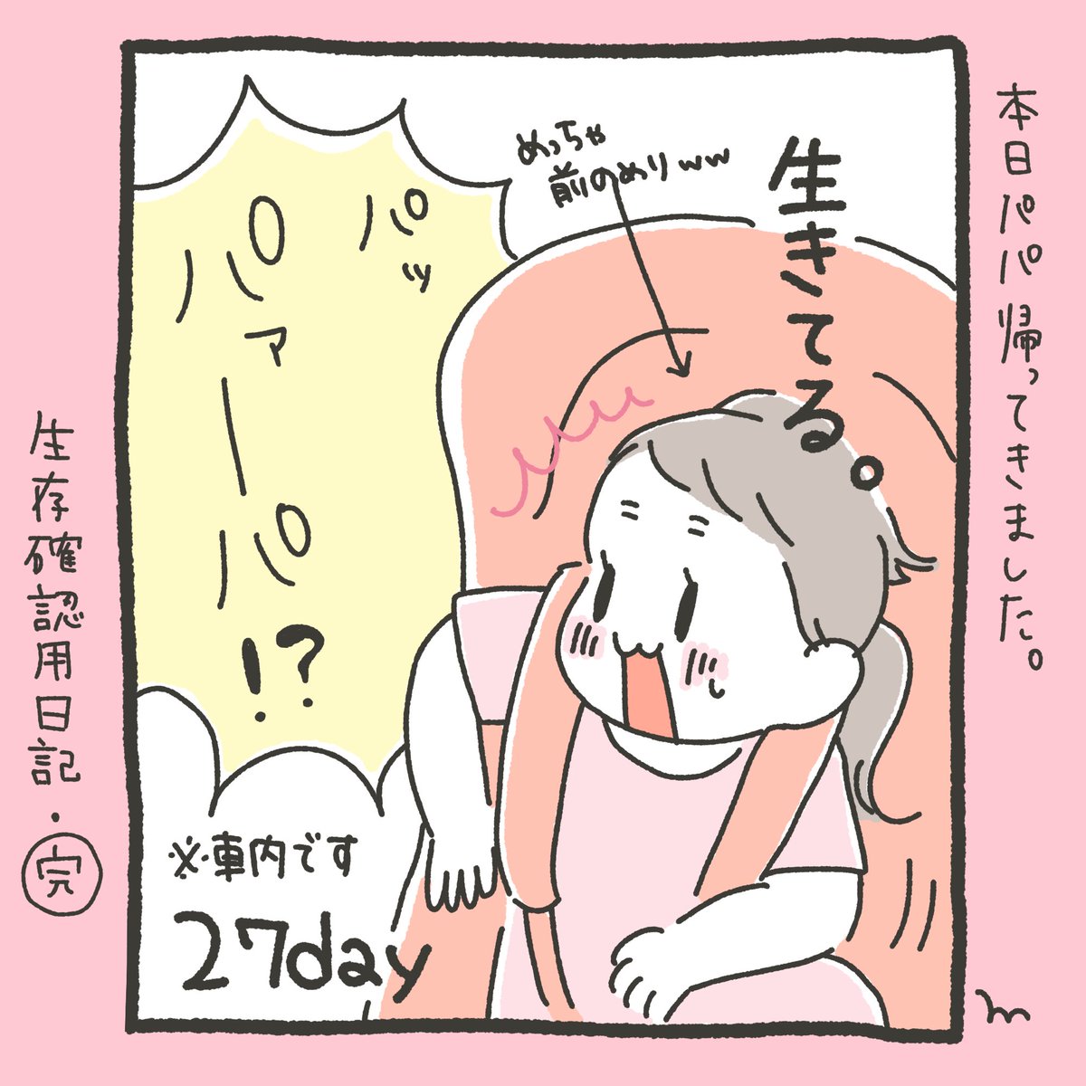 0 30 生存確認用日記📖27日目 なんか急にパパ帰ってきました😂笑 たらちゃんちゃんと今回は覚えてて、めちゃくちゃ喜んでいた🥹❤️ 本日で生存確認目的の日記は終了となります。明日からはゆるく違う絵日記やっていこうかなと思ってます\(^ω^)/🧡🧡🧡 #絵日記 #イラスト 22/08/20 23:02