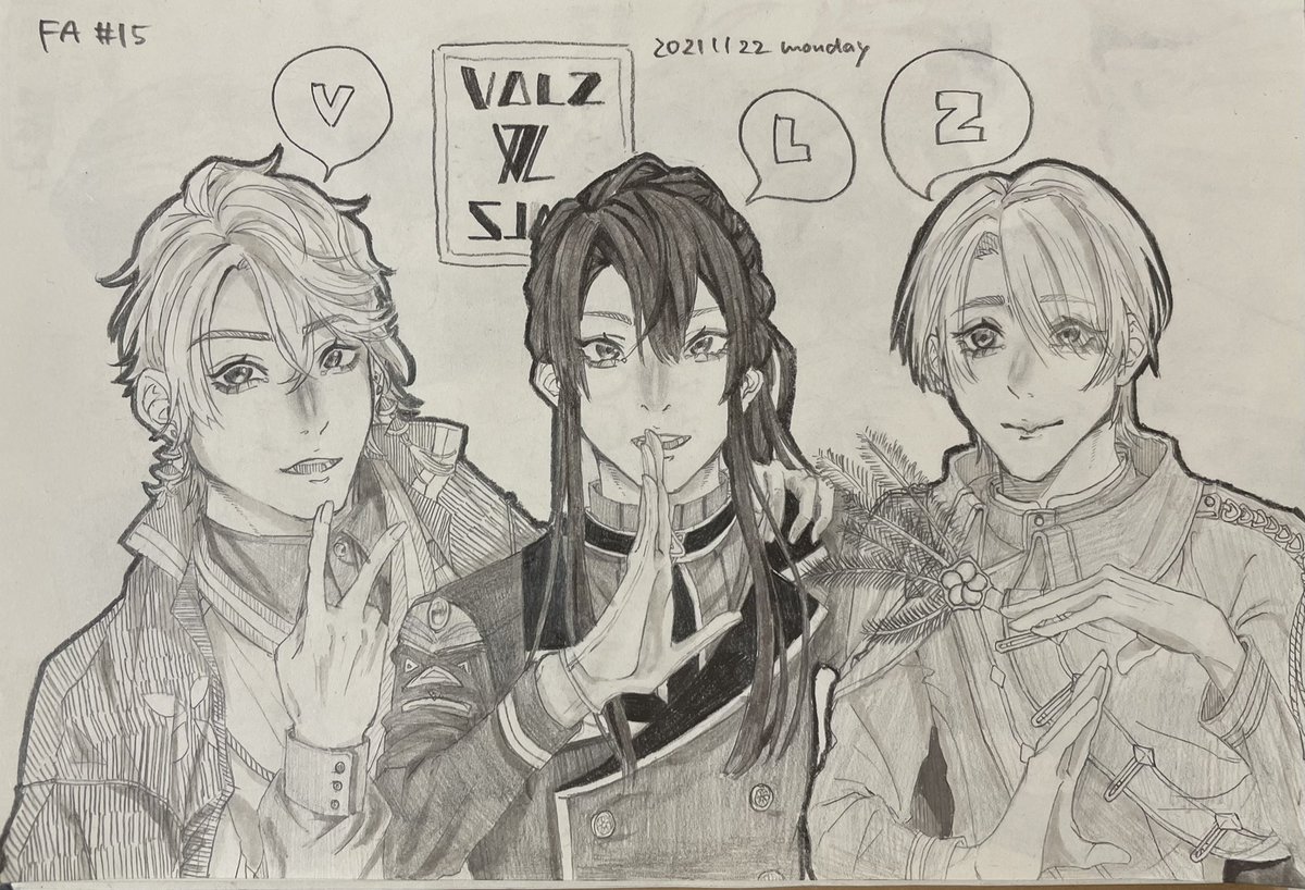 0 13 #VΔLZ #描いた晴 #長尾百景 #上弦画 友人のリクエストで描いたイラスト 顔面つよつよの3人最強素敵ʕ•ᴥ•ʔ‼️ 22/02/13 14:42