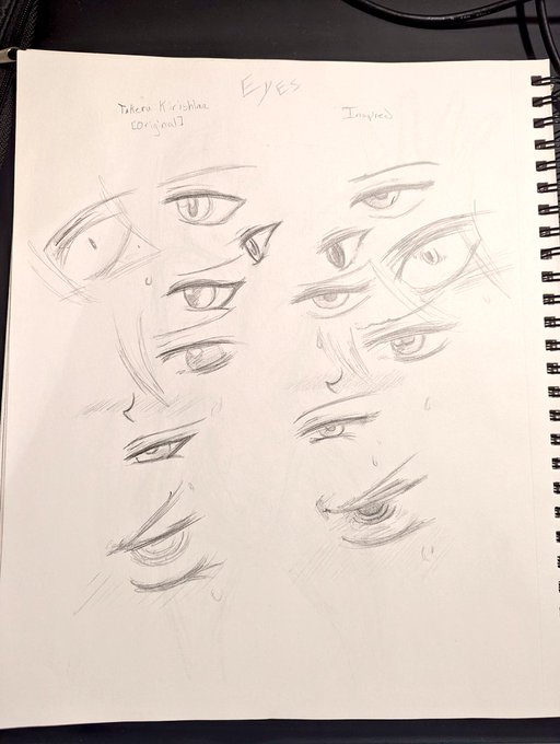 Did some study on eyes on paper. I first sketched eyes from the Melty Blood manga by Takeru Kirishima, then drew the same eyes without reference in an attempt to visualize my style. #rkgk #drawing #ArtistOnTwitter #art #イラスト #sketch #traditionalart
