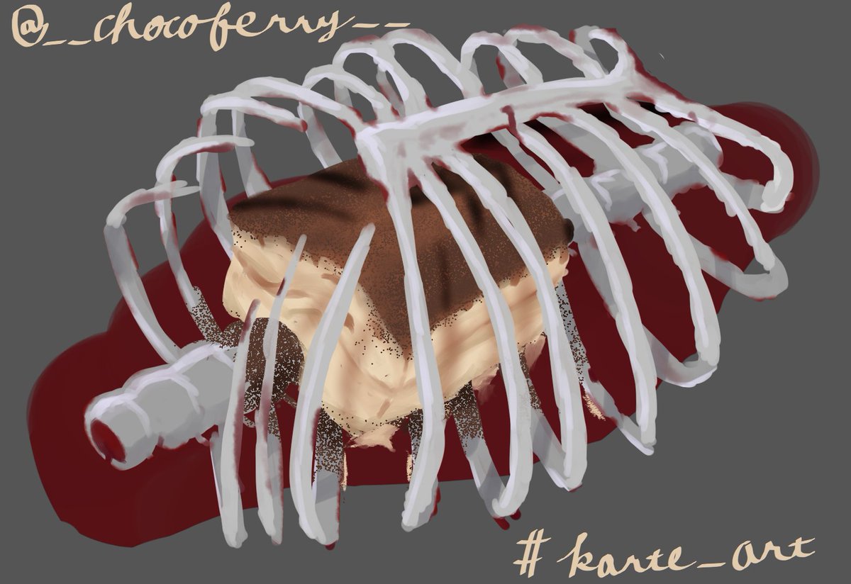 28 150 #karte_art 御本人様のツイートのスレッドにあった「肋骨の皿にティラミス」を見たら、こんなものが頭に... 18/05/01 16:59