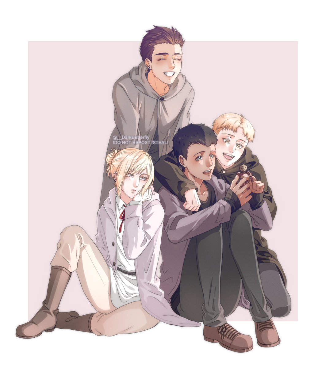 I have a headcanon that Bertholdt likes to craft (bc of that one junior high ep). He collects things like chestnuts to make figures for his friends! He made the armored titan for Reiner❤️ They were just kids when they went on their mission, maybe sometimes they played together🥺