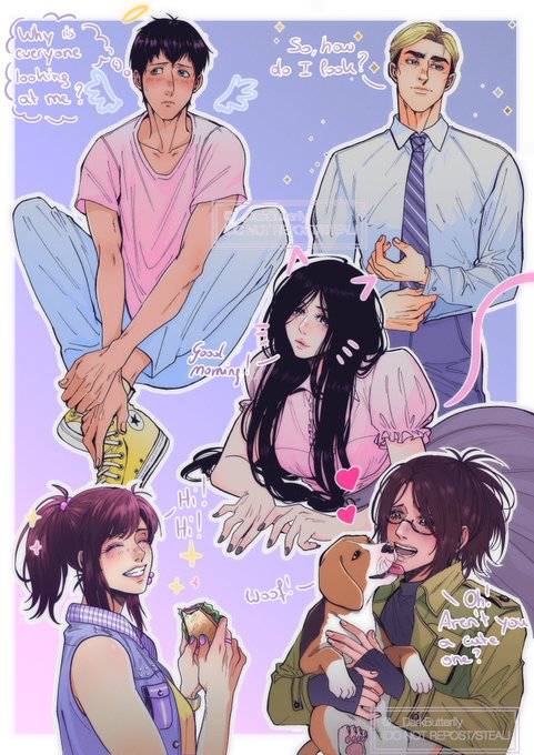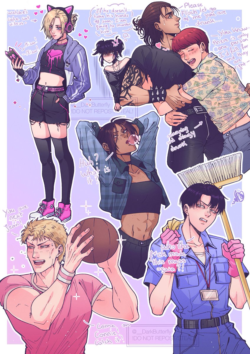 AoT modern AU sketches💜 Was scrolling too long on Pinterest and made some cute AoT sketches out of some poses and clothes I saw💞 Hope you like them! I sure had super fun drawing them🙈 I also have sooo many headcanons oh god this won't be the last modern AU fanart🙈