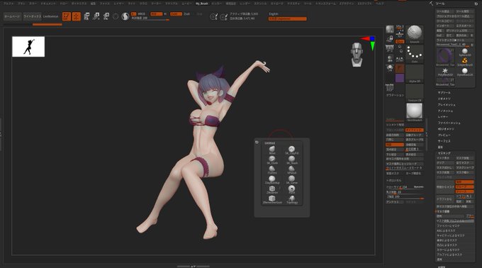 zbrush上で9割5分左手をニートにするUIとデバイスです。 必要なブラシはペンのボタンで呼び出します。 左手君はジュース飲んだりお菓子食べたりスマホ弄ったり頬杖付いたりと割と自由にさせてます。
