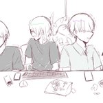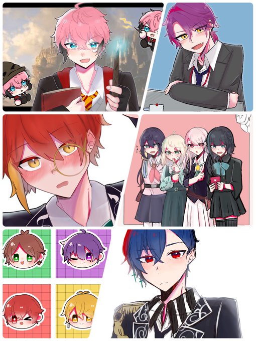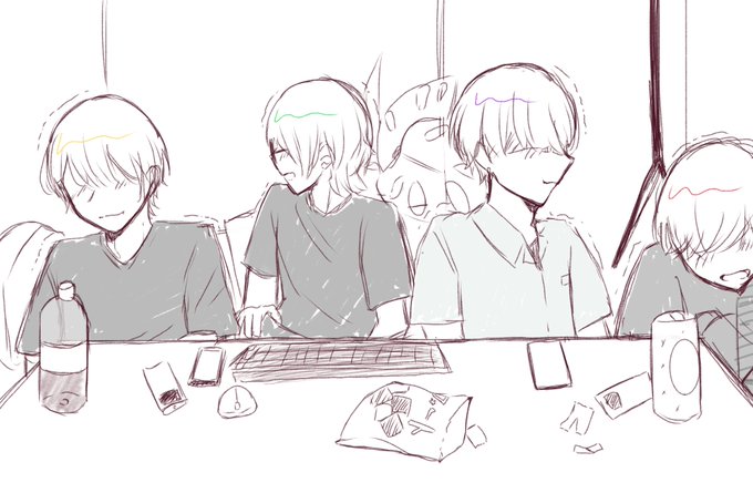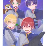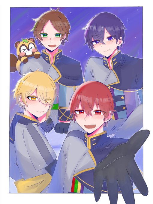 乙女ゲームの世界は大変そう。💙🤍💚❤️ #そらるの絵 #まふあーと #うらたぬ王国の美術館 #坂田です