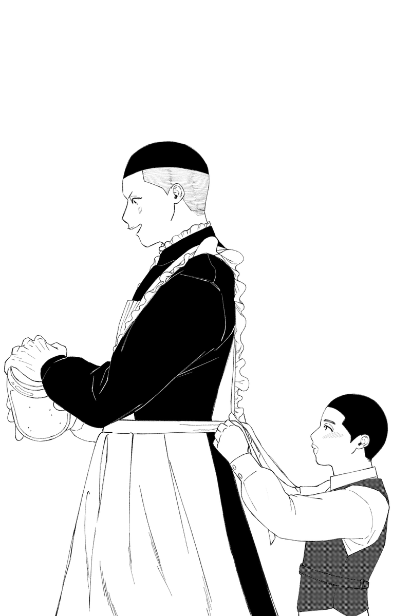 도련님은 꿀우유가 그렇게 좋으세요? 이 시간에 먹는 꿀우유가 맛있긴 하지만 그러다 집사님께 들키면 저는 죽은 목숨이라구요 제가 타주는 꿀우유가 제일 맛있다고요? 하하 그거 왠 줄 아세요? 제가 도련님 꿀우유를 탈 땐 도련님을 향한 사랑을 엄청 넣거든요