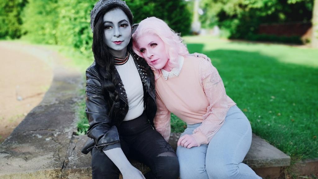 What if Marceline and Bubblegum would be fans of Riverdale! Marci as Marceline Jones Bubblegum as Bonnybell Cooper Thanks to @SerPadfoot for taking the picture. #adventuretime #cosplay #riverdale #bubbelgum #marcelin