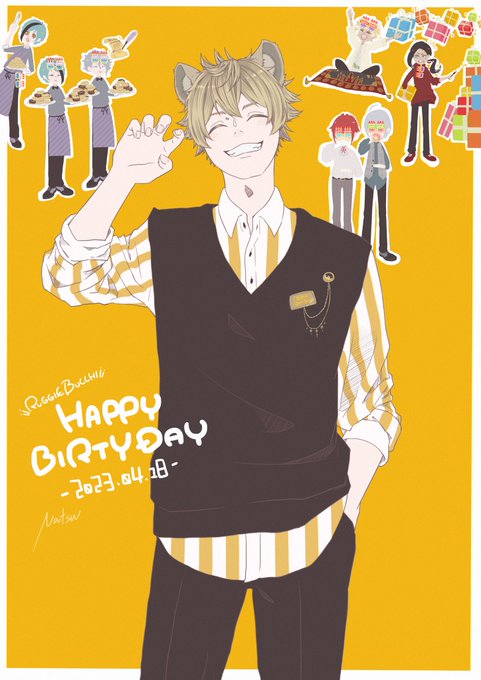 25 138 お誕生日おめでとう!!!🐆🍩 2年組でわいわい🎉👏 #ラギー・ブッチ誕生祭2023 #ツイステ #ツイステファンアート #twstファンアート 23/04/18 00:02