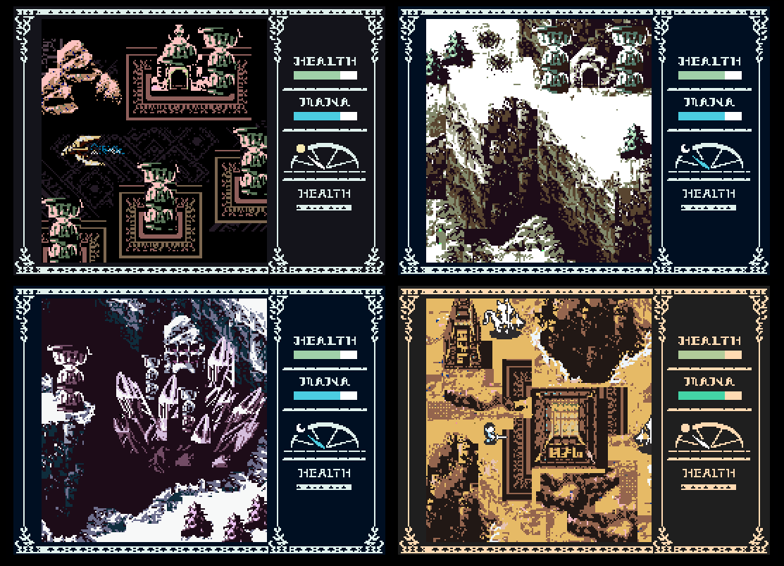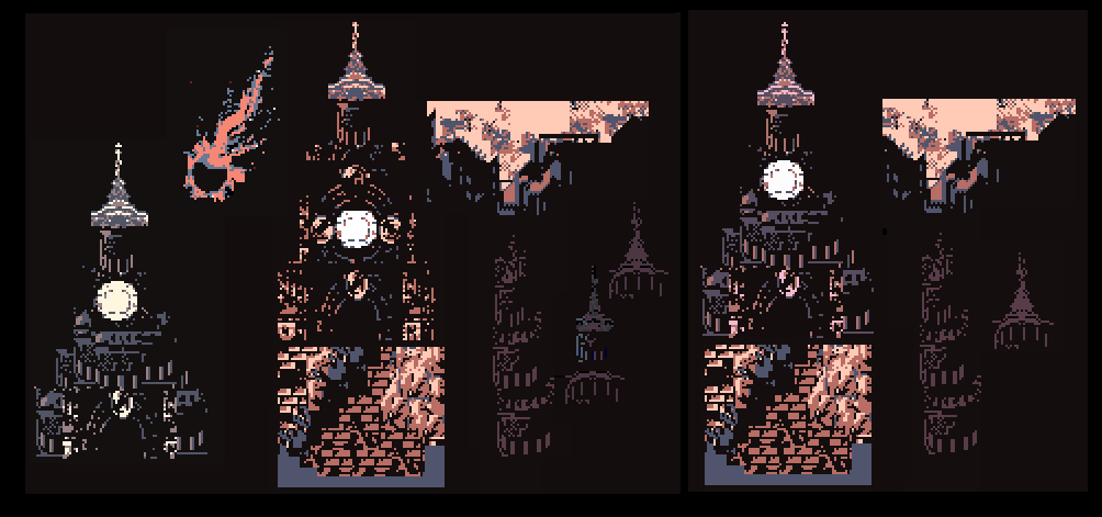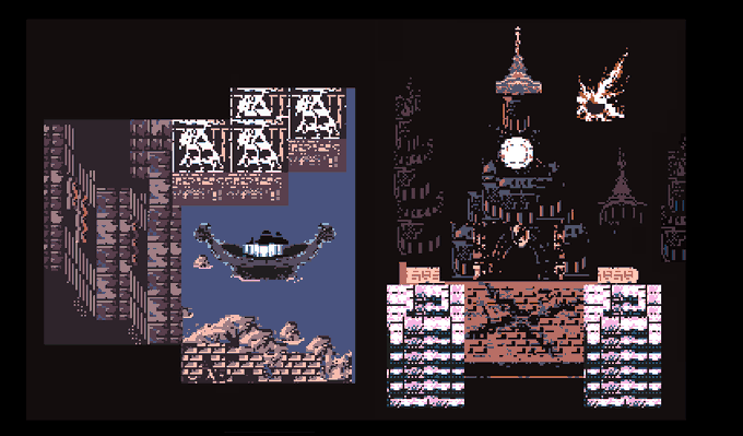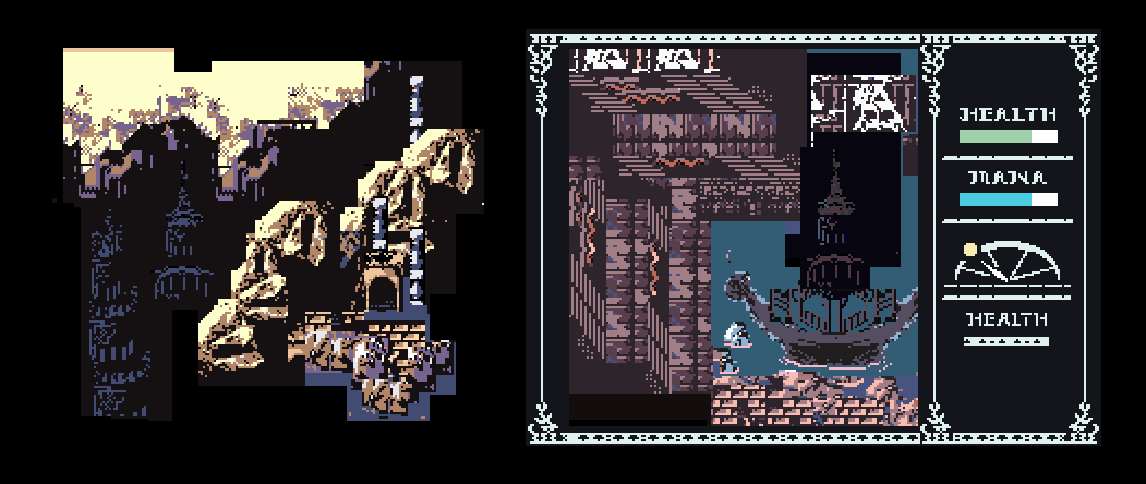 5 37 Thanks everyone for the support and interest! Here's a few more recent mockups that are a bit unfinished, hopefully in the new year I can manage to get these areas connected and playable! #pixelart #ドット絵 21/12/24 13:23