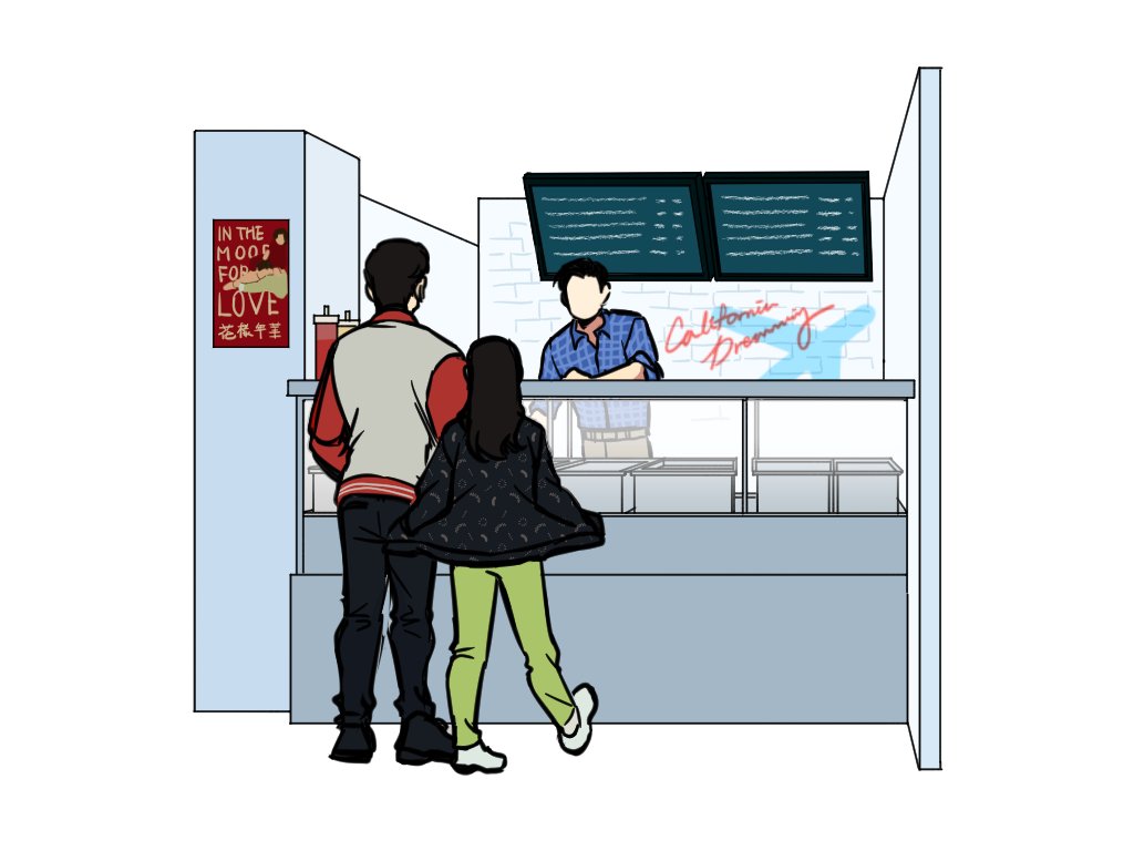 - 샐러드 하나요! - 난 피쉬 앤 칩스. - 우, 여기 선곡 맘에 든다! #샹치 #중경삼림