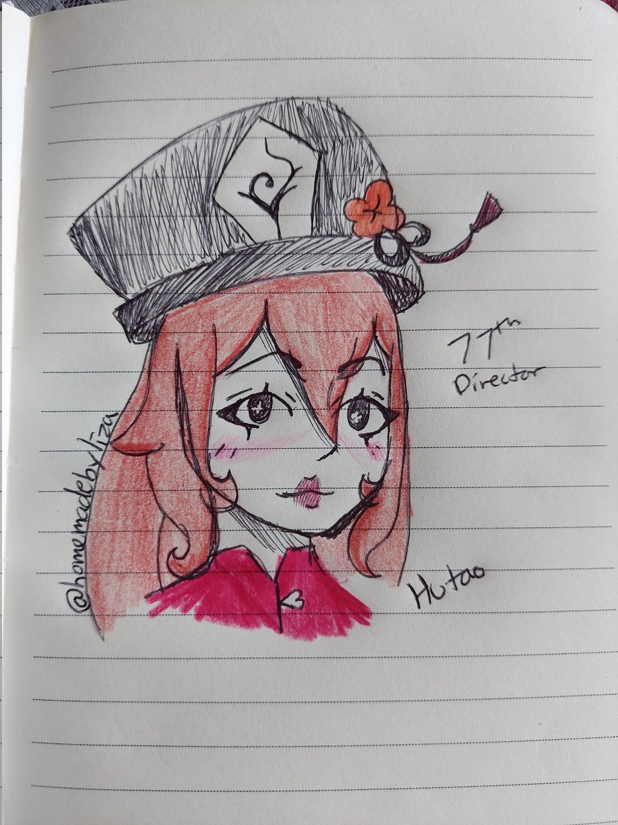 @briannanoellek quick Lil doodle of the 77th director HU TAO with a jumpo hat #GenshinImpact #Genshin #genshinimpactfanart @GenshinImpact #ArtistOnTwitter