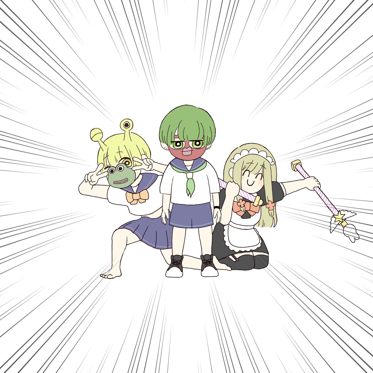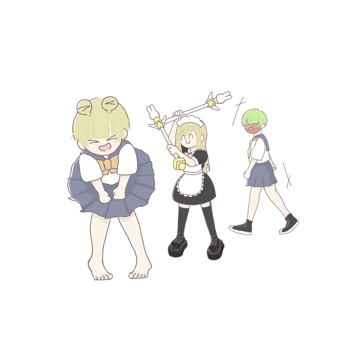 ⚠️捏造 メイドたらちゃんとセーラー服引きずってる 二刀流ステッキは振り回してると思うんだよね🤔(物理) #あろ絵よーぐると #たらちゃんの梅ねり #絵ねごりくん