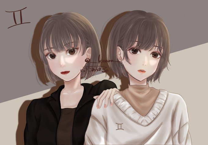 双子座♊(二卵性) 髪とかまだまだ課題いっぱいやけど、絵柄的には可愛くかけた!! #イラスト #オリジナルイラスト #絵柄が好みって人がいればいいなぁ