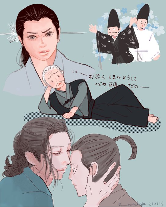 124 506 去年1年はずっと烏帽子を描いていたので久々の総髪楽しいらくがき #どうする絵 23/01/17 14:01