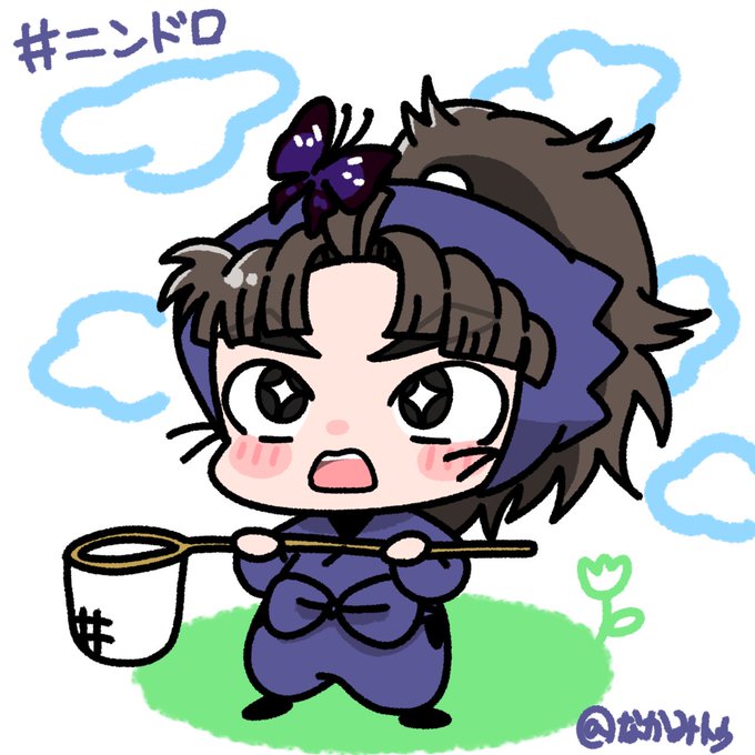 #nin_draw 珍しいちょうちょを見つけて捕まえたいけど動いたら逃げられそうで動けないハチザエモン