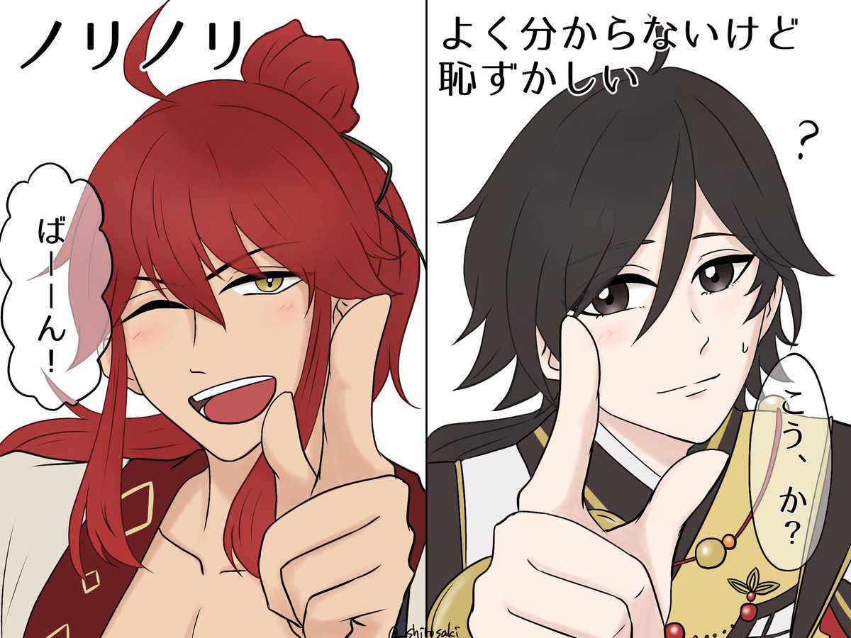飲み部にばきゅんポーズ?をお願いしてみた(断る・無視などの選択肢は排除しました) 手前にいるのは若です #食物語_rkgk