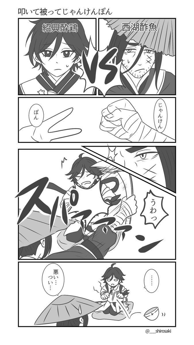 飲み部に『叩いて被ってじゃんけんぽん』してもらった(道具はハリセンとヘルメット) #食物語_rkgk