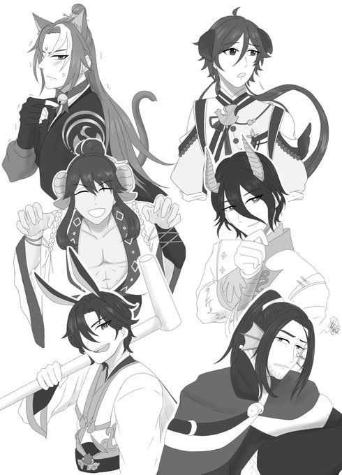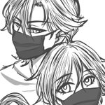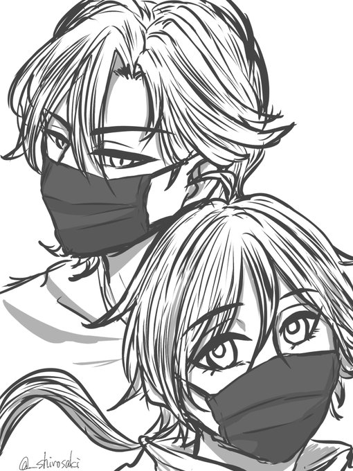 4 9 『黒マスクが似合うのは誰だ選手権(?)』みたいな感じで飲み部本に載せようとしてたのを思い出したので描いてみました #食物語_rkgk 23/02/27 02:11