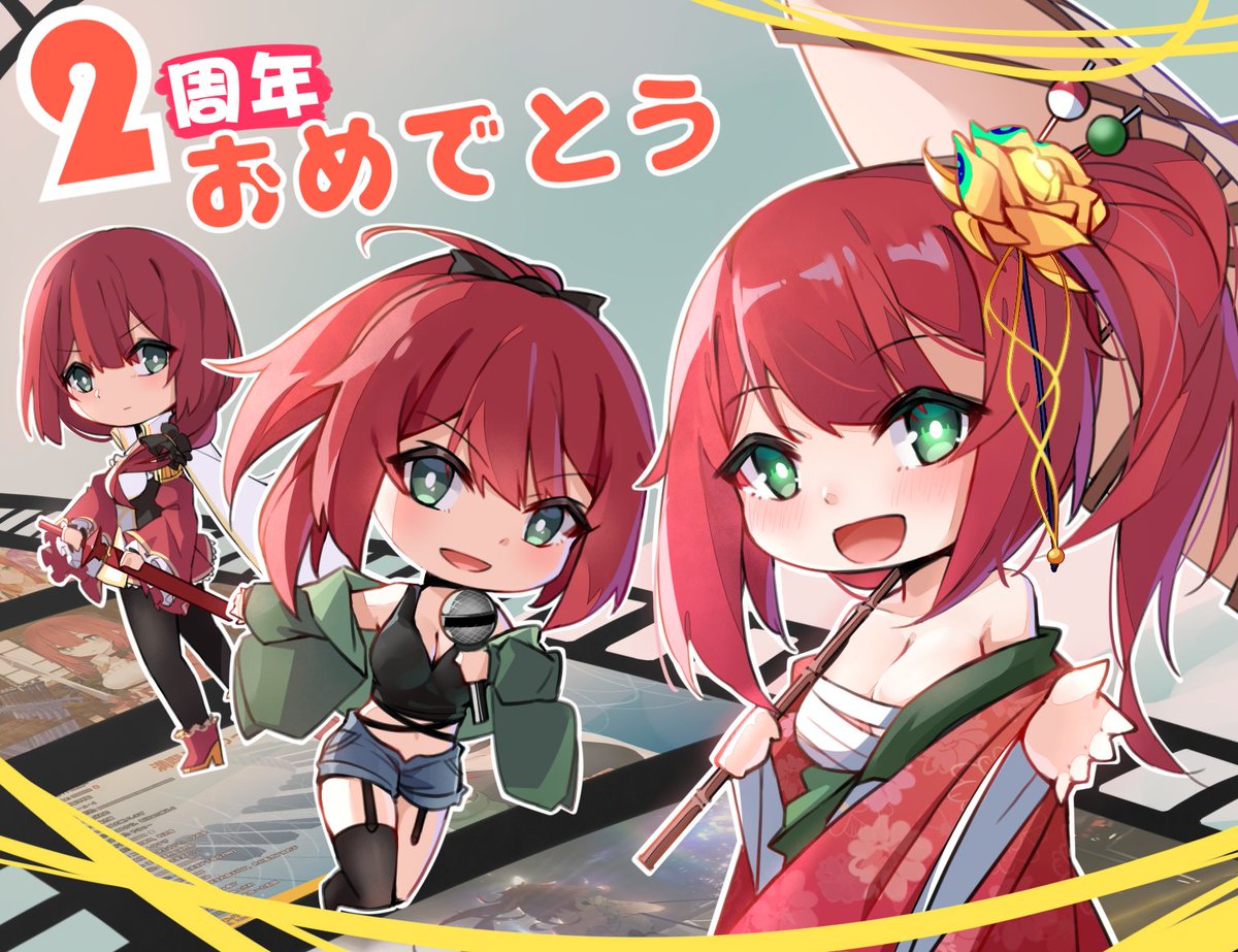 12 80 #絵rio #エリオ団長 @hiseki_erio 団長Vtuberデビュー二周年おめでとう! 付き合いは少々の半年だけですが、今後も一緒にいようと思う。 友達と一緒に団長の周年祝絵をデザインしたんだよ,どの時期の団長も美しくて可愛いです(*/∇\*) 気に入られると嬉しいね、使用もご自由に!(画师:白亚翔子) 21/05/01 07:53
