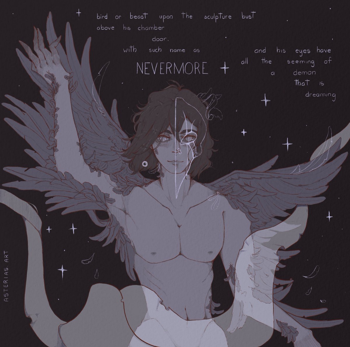 ✨ Aquí les muestro mi participación en el #inktober2021 con la temática del día 2, Cuervo 🌑 espero les guste.