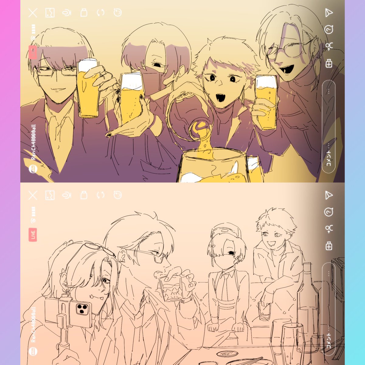 最近は創作配信グループを描いています。他にも男性キャラクターメインに色々。 創作アカウントを対象に無言巡回します。相互希望片思い二日です!! #自創作に狂っている人間と繋がりたい #冬の創作クラスタフォロー祭