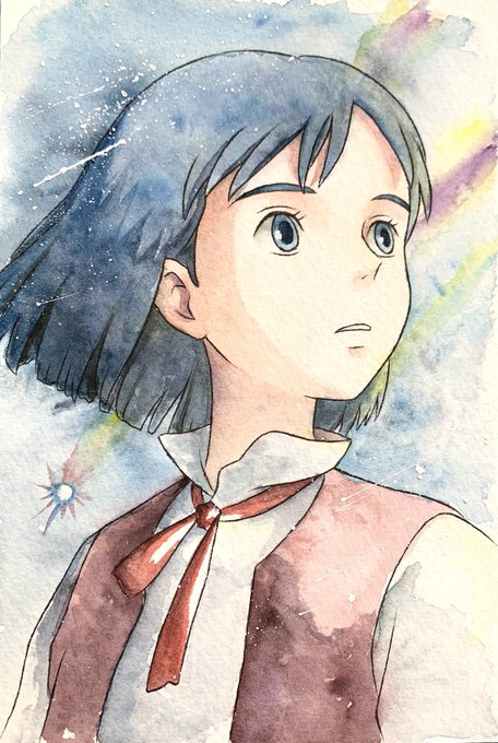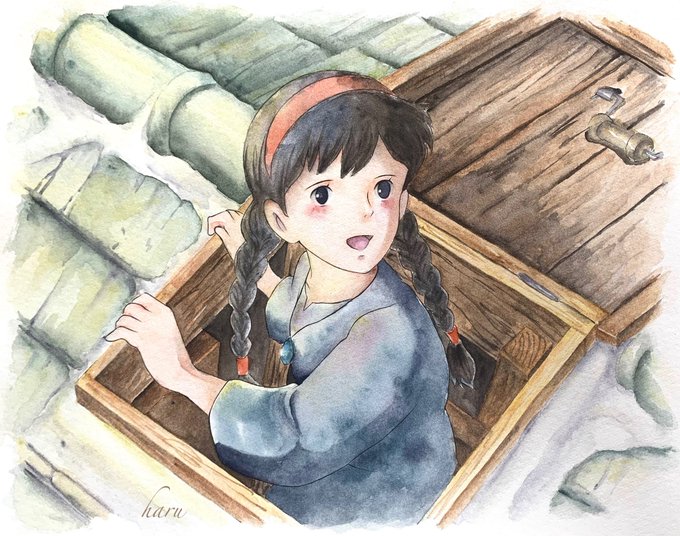 8 77 背景適当に塗ってったら、 なかなか良い感じになってくれて満足☺️ #天空の城ラピュタ #ジブリ #StudioGhibli #模写 #水彩 23/06/15 17:47