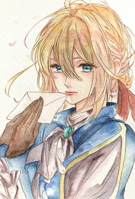 やまもり三香先生が描いたヴァイオレットの模写!です! #ヴァイオレットエヴァーガーデン #模写 #水彩 #水彩イラスト