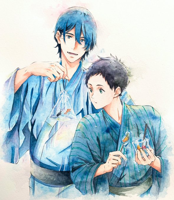 2人を揃えたかった!!! なんか千切ぼやけてる、、? #ブルーロック #千切豹馬 #蜂楽廻 #模写 #水彩