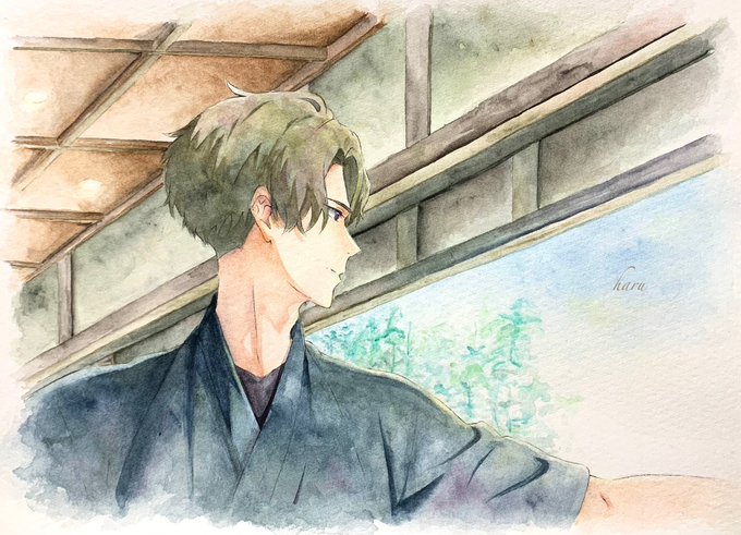0 3 和装男子最高すき🫰🏻 #香月さんの恋する時間 #少女漫画 #模写 #水彩 23/04/18 22:08