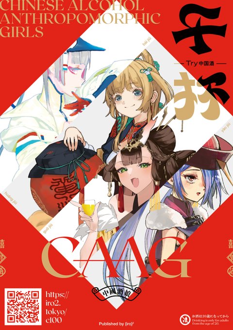 メインコンテンツは、中国酒という少し取っ掛かりにくいお酒を、イラストで擬人化するという形で、特徴を伝えて興味をもってもらうようなアプローチにしています。(飲料系の擬人化は割と使い古された企画感ありますが、一度やってみたかったので) iro2.tokyo/c100 #C100 #中国酒