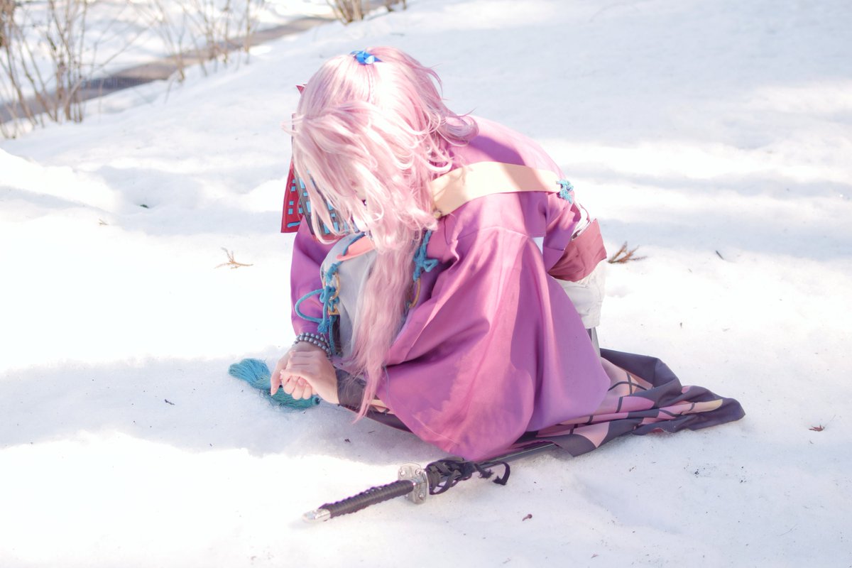 【刀剣乱舞 宗三左文字 コス⚠️ほぼオフショ⚠️】 雪だるま作ろうとして、雪が熔けかけて固くなってる雪を解すために本体で雪を削り出す宗三 photo…Na。さん