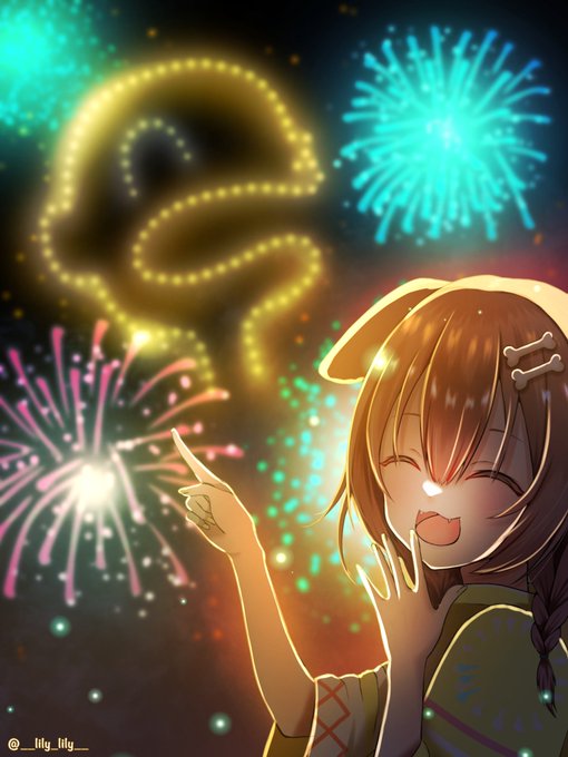 花火を見上げるわためちゃん🎆 #つのまきあーと
