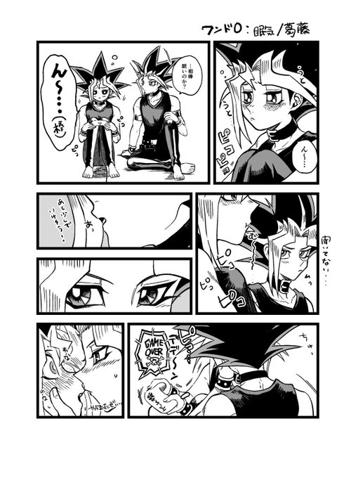 眠気/葛藤 眠気に葛藤しつつゲームに集中する相棒に無視されて拗ねてついチュウしちゃった闇遊戯 #闇表版ワンドロワンライ