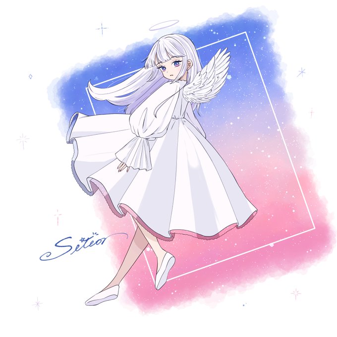 4 54 🌄空を纏う天使🌇 #イラスト #創作 #絵描きさんと繋がりたい #絵柄が好みって人にフォローされたい 22/10/27 21:46