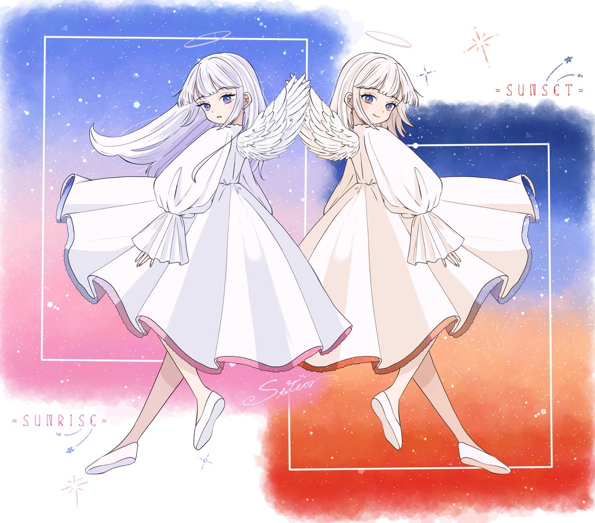 6 64 夕焼けの天使🌇 #イラスト #創作 #絵描きさんと繋がりたい #絵柄が好みって人にフォローされたい 22/10/24 21:03
