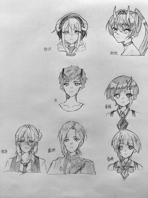 #イラスト #創作 キャラデザ 角無いのはまだデザ決まってない