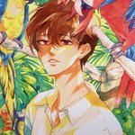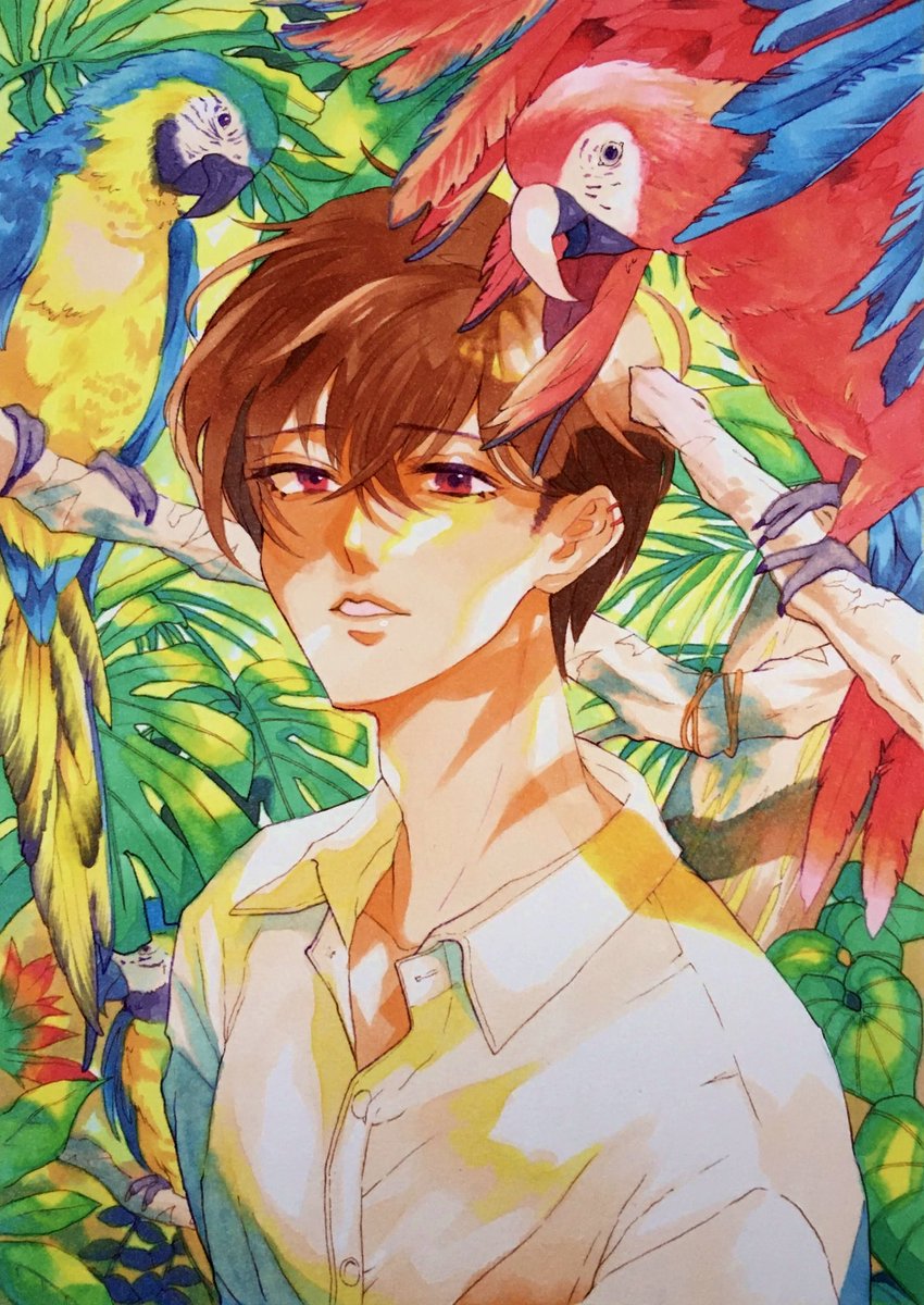 1 8 ♡rtありがとうございました🦜🌿☀️ 熱帯にいるひろしでした。 12色縛り。コピックと一緒の画像で夜上げです。 コウゴウインコ、というか鳥を初めて描いた…🦜🦜🦜 #コピック 22/05/06 18:51