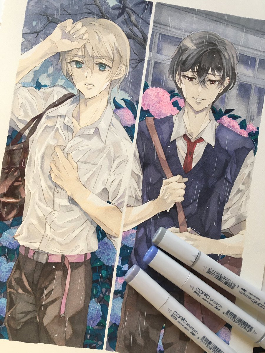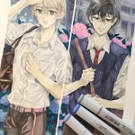 ♡rtありがとうございました☔️ 上げついでの顔アップ☔️ ←響一さん、→ひろし #コピック #コピックイラスト