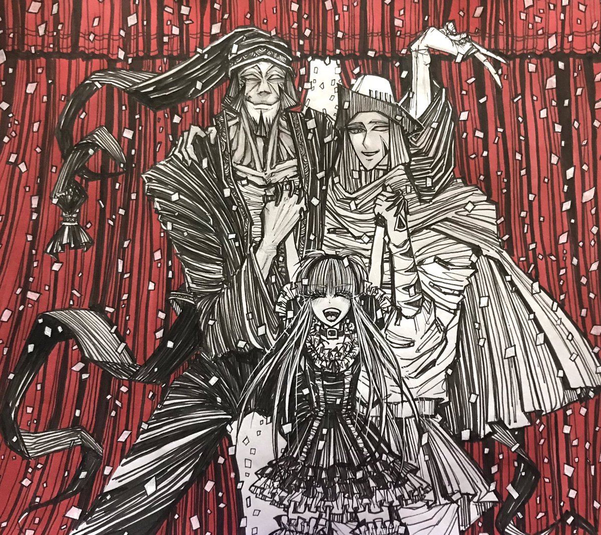 #sbtwebonly 私も賑やかしたい一心で絵を描いたら全然めでたくない泥努氏が出来ましたが双亡亭最高に好きです。おめでとうございます。