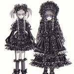 新旧パンタローネ様の概念落書き。新の衣装も可愛いけども、本人が圧倒的にフラ様から賜った旧衣装派でしょうし、私も旧の方が好きです似合う