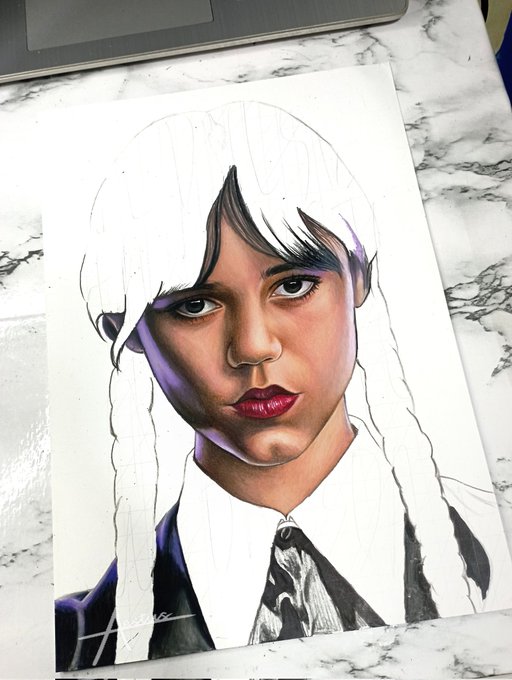 6 9 New drawing of @jennaortega as Wednesday Addams🖤🤍 This is my favorite drawing so far. I hope you like it as well! Feel free to share 🖤✨ IG: instagram.com/_aestus_/ . . . #wednesday #wednesdayaddams #jennaortega #art #artist #artph 22/12/15 19:26