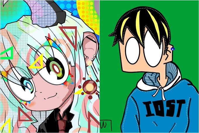 トリタツちゃん@toritatu_nft のZUKIN'sのクマちゃんとアイオーンのSHIROMEくんの仲良しの一枚を描いてみました❗️🤤🤤❤️ ZUKIN's→opensea.io/collection/zuk… #イラスト #NFT