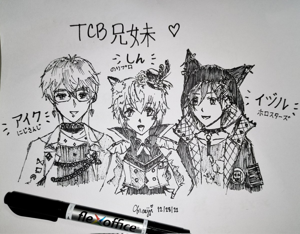 I drew this while watching the stream so sorry if it's not very detailed and accurate! ^^ The stream was so fun! You are all so cute~! ありがとうございます、Ikey, Shin-kun, and Izuru-chama! 💙💙💙 #TCB兄妹 #Ikenography #しん様へ届け #イヅル描いたぞ