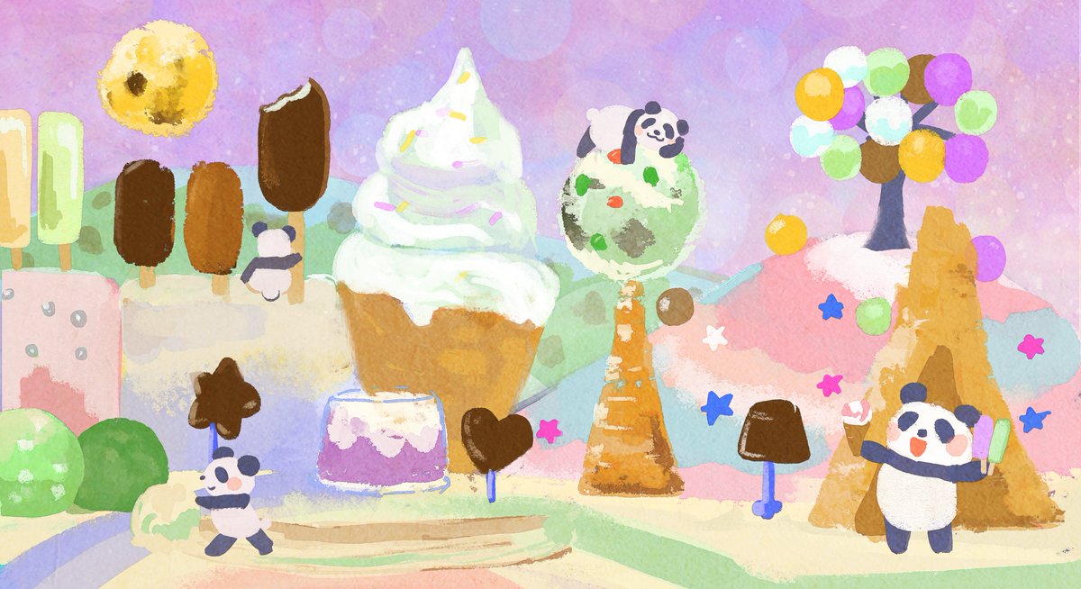 5 34 お題:「夢の中」 #背景版深夜の真剣お絵描き60分一本勝負 時間外で参加失礼します アイスの夢🍦🐼 20/10/25 21:53