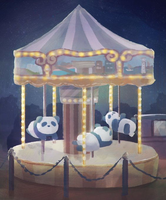 お題:「メリーゴーランド」 時間外参加失礼します🐼 #背景版深夜の真剣お絵描き60分一本勝負