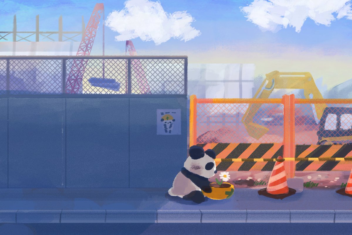 お題:「工事現場」 #背景版深夜の真剣お絵描き60分一本勝負 久しぶりに参加させていただきました(10分ほどオーバーで..🐼)