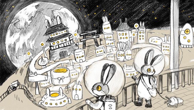 5 13 お題:「月の都」 #背景版深夜の真剣お絵描き60分一本勝負 23/04/22 22:33